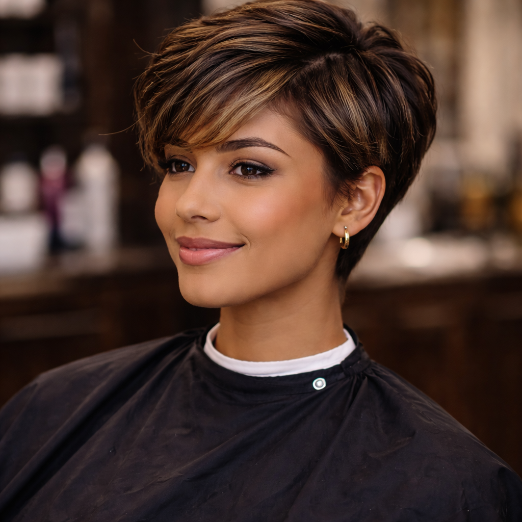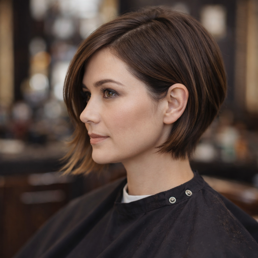 Et friskt, tilpasset kutt som rammer inn ansiktet, passer for ulike teksturer og stiler