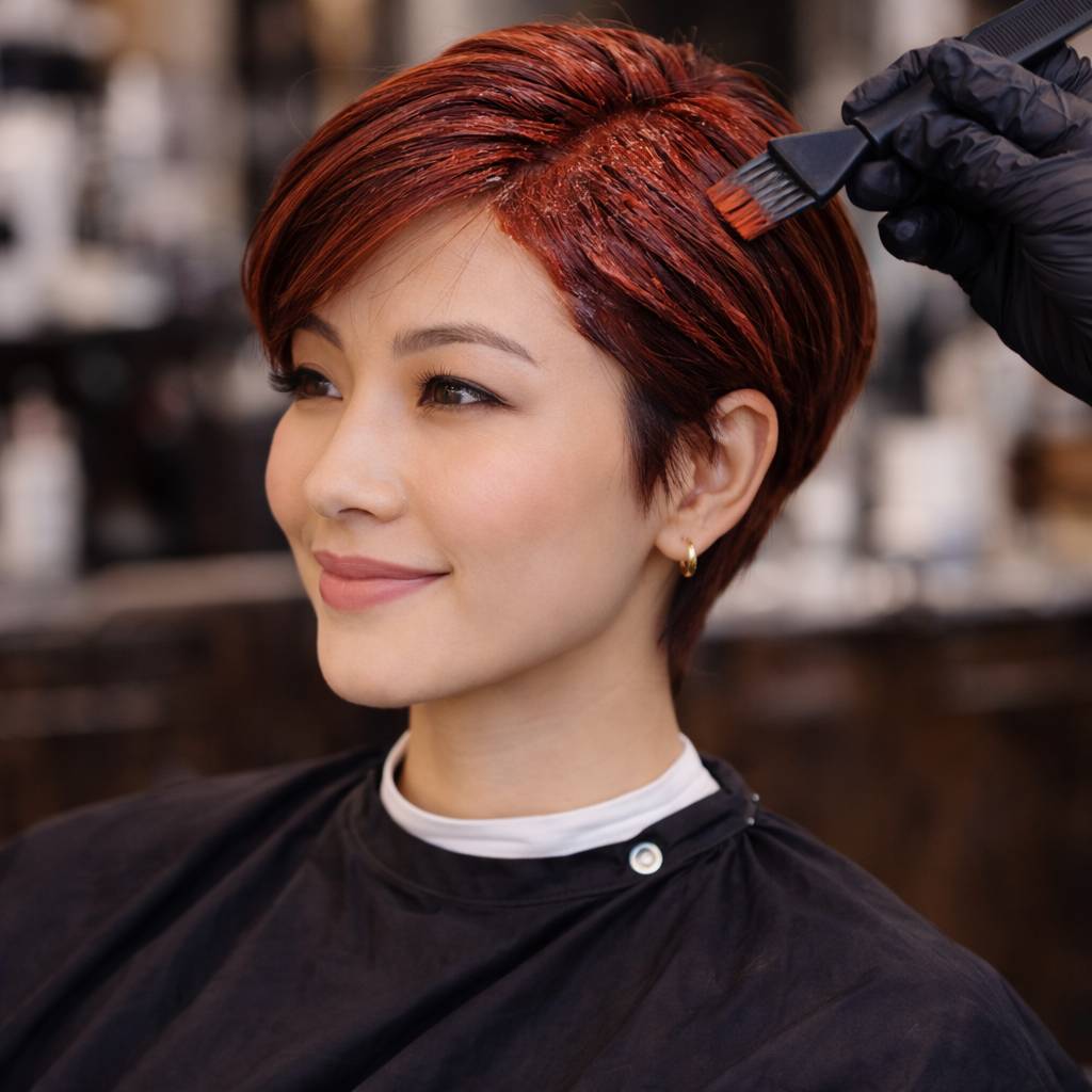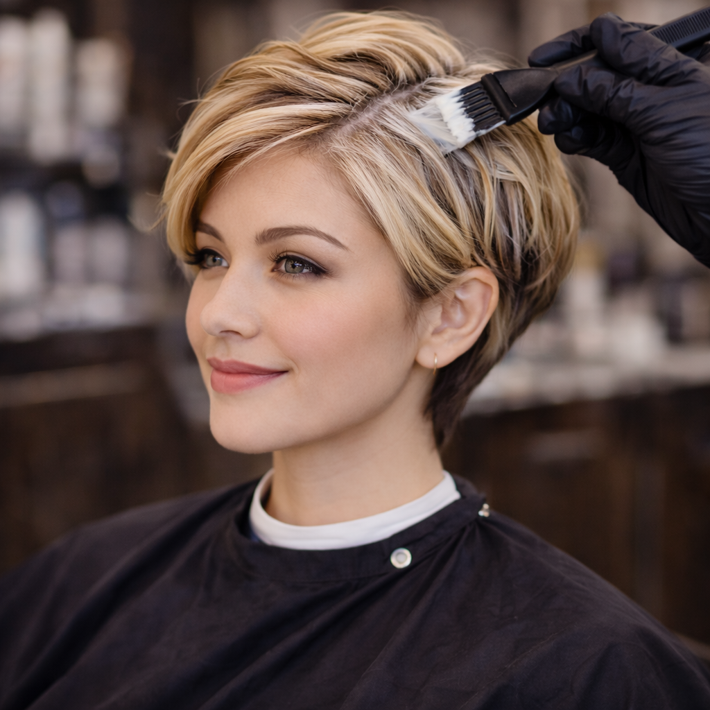 PÄfÞring av en helmengde farge pÄ kort hÄr eller fokus pÄ de fremre innrammingspartiene.