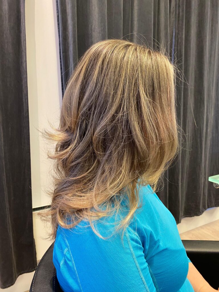 En full stripe- og toningstjeneste for halvlangt hÄr for Ä oppnÄ dybde og glans.